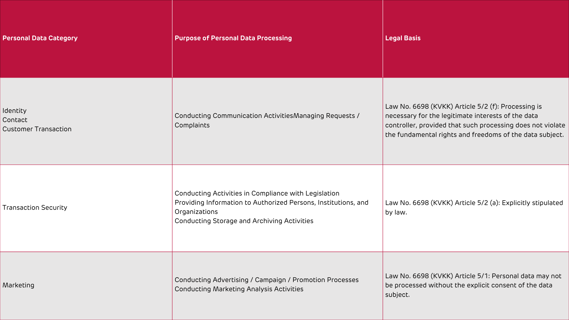 This privacy notice has been prepared in accordance with the Law No. 6698 on the Protection of Personal Data and the relevant legislation. Necessary amendments may be made to this notice in line with changes in the applicable legislation and/or the Company’s personal data processing purposes and policies.